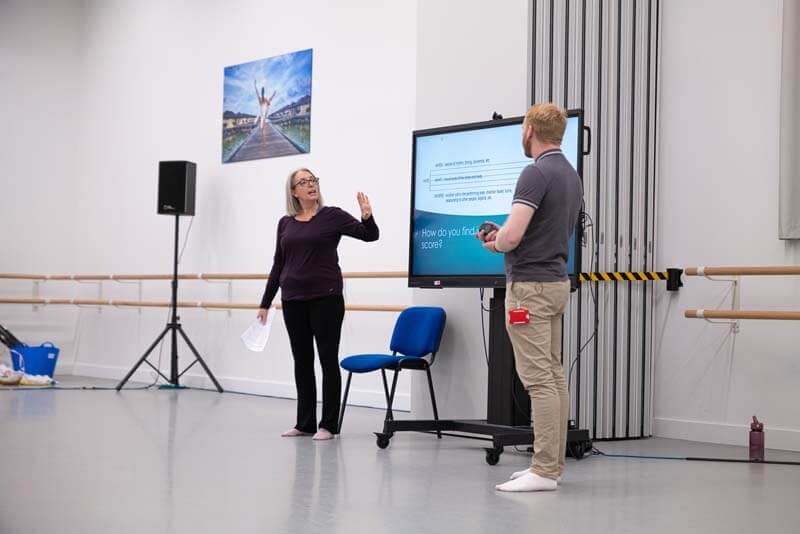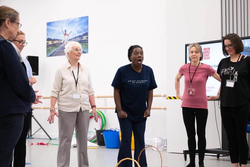 Dr. Jo Read’s trauma-informed teaching session resonated deeply with many, guiding members on how to go about creating emotionally safe and supportive dance spaces. Teachers also explored expressive possibilities for older adults in Marsha George’s Silver Swans musical theatre workshop, which blended gentle technique with theatrical flair.